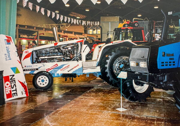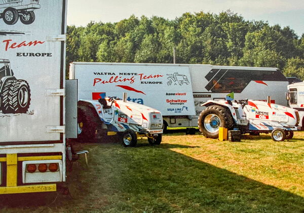 Natürlich standen die Puller nicht nur an Ausstellungen, sondern fuhren auch an Events mit, wie untenstehend im August 1997. Das Aushängeschild war damals das legendäre Team Herlevi, das seinerseits Teil des Valtra Neste Europe Pulling Team war. Die enge Zusammenarbeit zwischen Team Herlevi und Valtra begann in den frühen 90er Jahren, als Valtra als Motorenlieferant für die Traktoren des Teams fungierte.