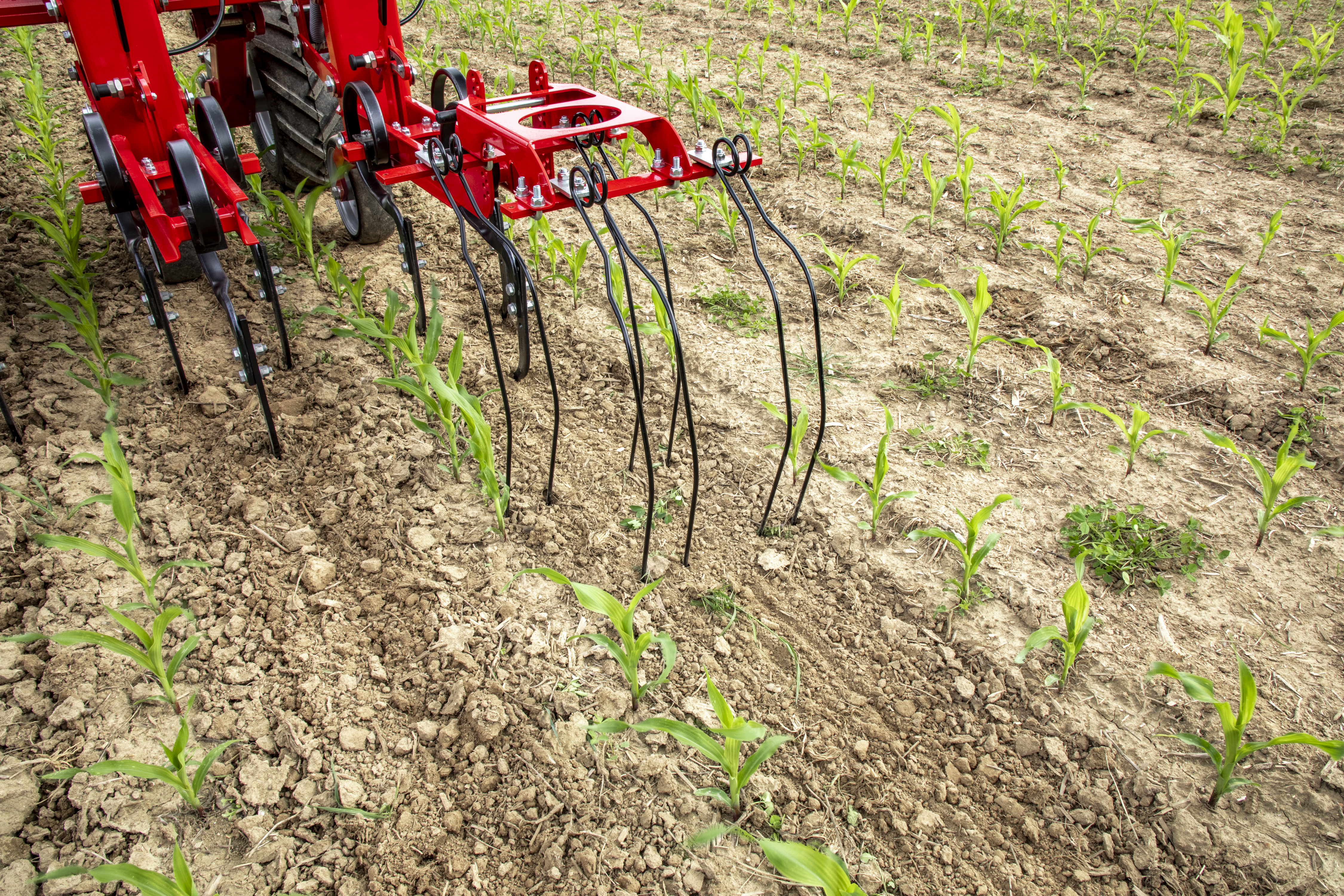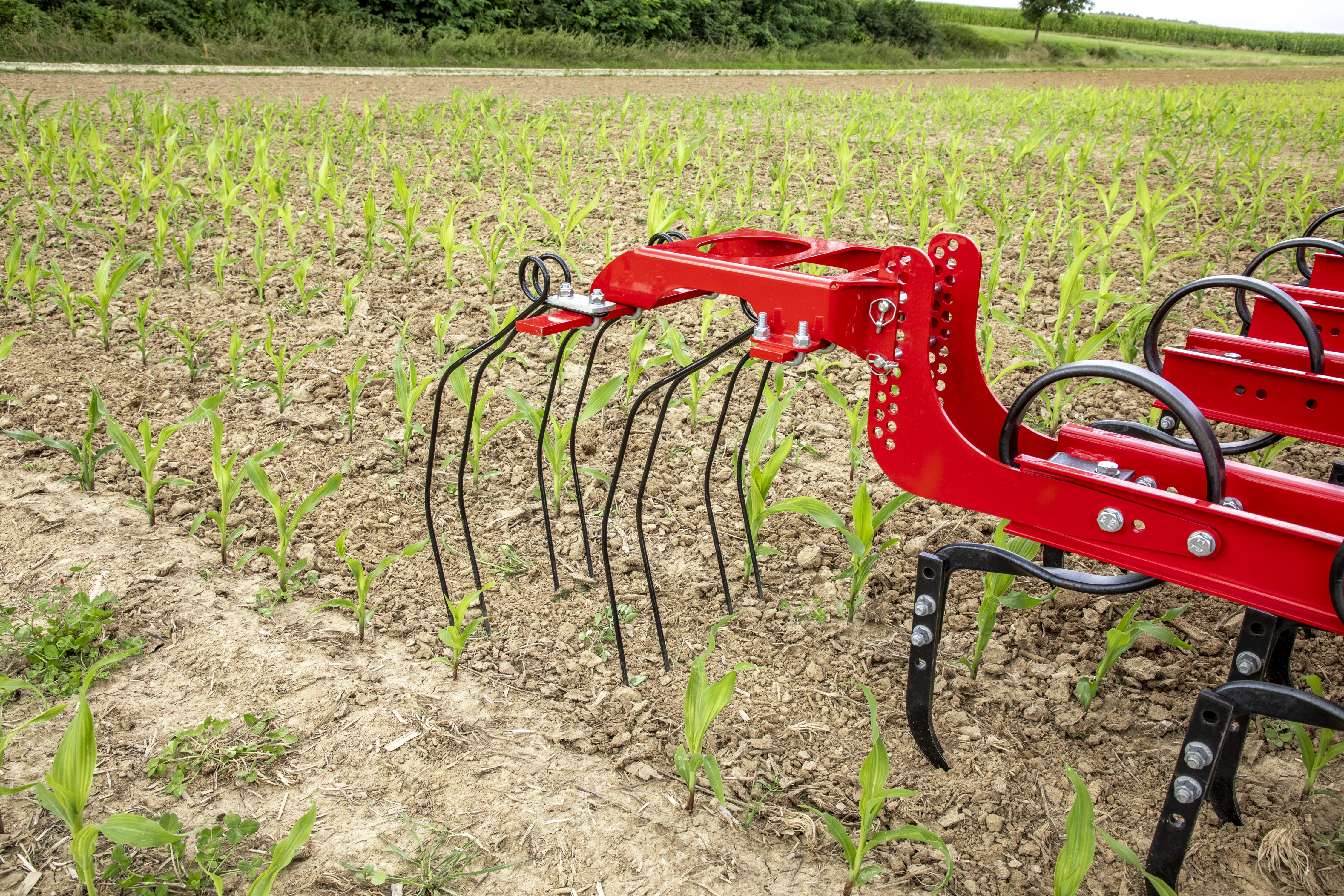 Das Parallelogramm sorgt für verschiedene Reihenabstände, die es mit dem Update auch mit 15 cm und 30 cm Abstand gibt. Insgesamt kann man mit dem Transformer VF so Reihenabstände von 15 bis 80 cm abdecken. Die Arbeitstiefe lässt sich simpel und ohne Werkzeug stufenweise einstellen. Zusatzwerkzeuge wie Kulturschutzscheiben und Kulturschutzbleche schützen die Pflanzen im frühen Wachstumsstadium. Die Fingerhacke und Häufelbleche dienen z.B. zur Unkrautbekämpfung in der Reihe.