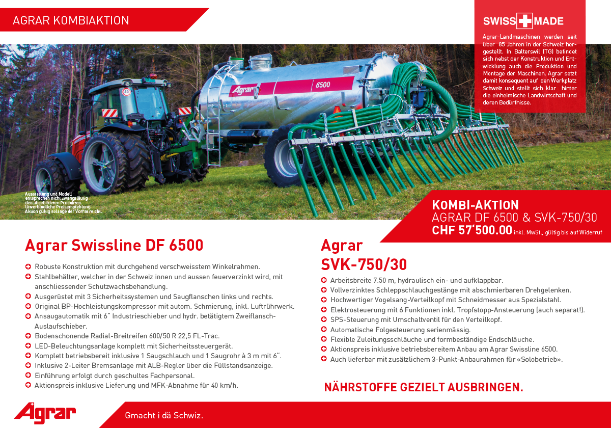 Mit unserer Kombiaktion, Agrar Swissline DF 6500 und dem Agrar SVK-750/30 sind Sie vorbereitet.